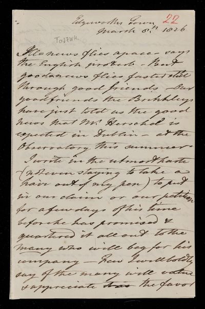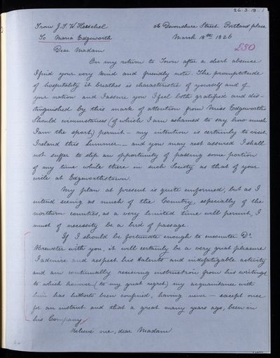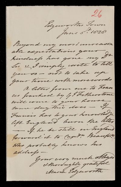 8 March 1826 Sender: Maria Edgeworth Reference number: HS/7/22