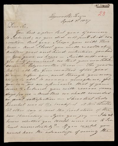 2 April 1827 Sender: Maria Edgeworth Reference number: HS/7/23