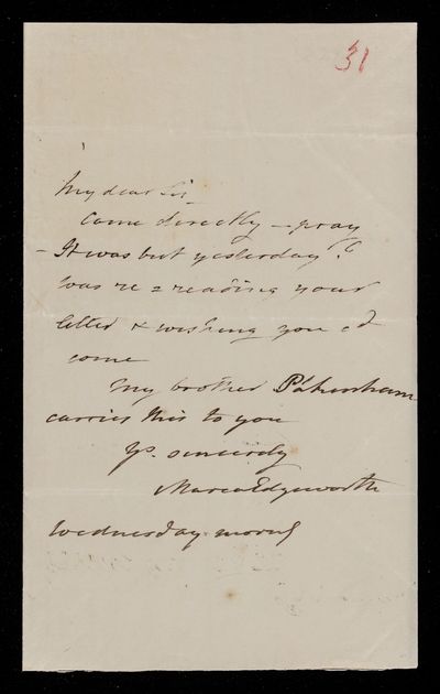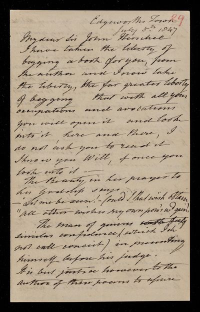 5 July 1847 Sender: Maria Edgeworth Reference number: HS/7/29The Pre-Raphaelite Brotherhood is formed, by John Everett Millais, Dante Gabriel Rosetti and others