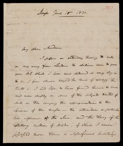 15 June 1830 Sender: John Frederick William Herschel Reference number: HS/16/337