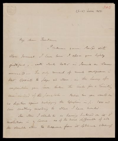 11 June 1831 Sender: John Frederick William Herschel Reference number: HS/16/345