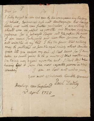 05 April 1725 Sender: Paul Dudley , Paul Dudley Reference number: EL/D1/86