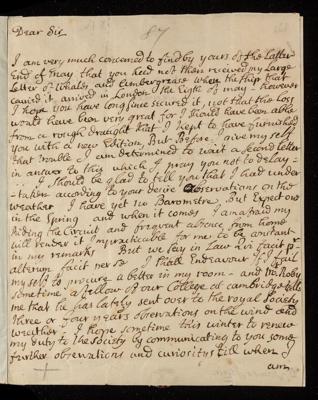 09 November 1725 Sender: Paul Dudley , Paul Dudley Reference number: EL/D1/87