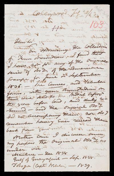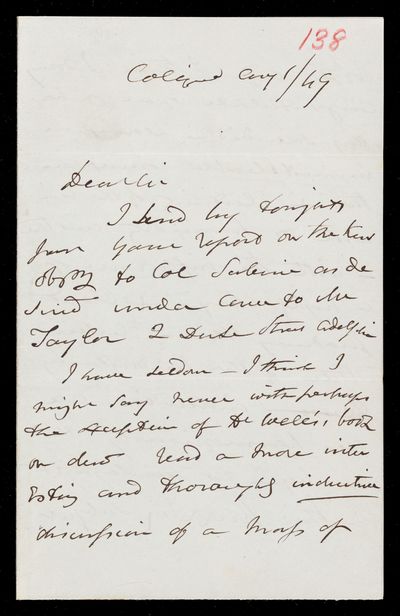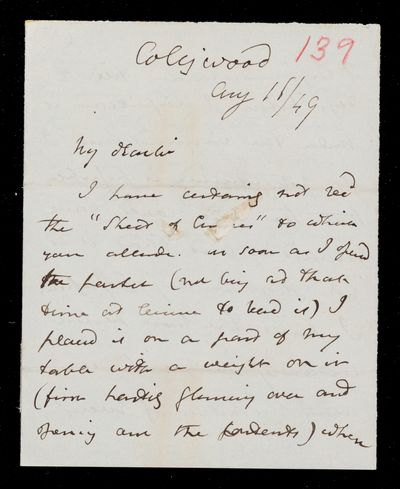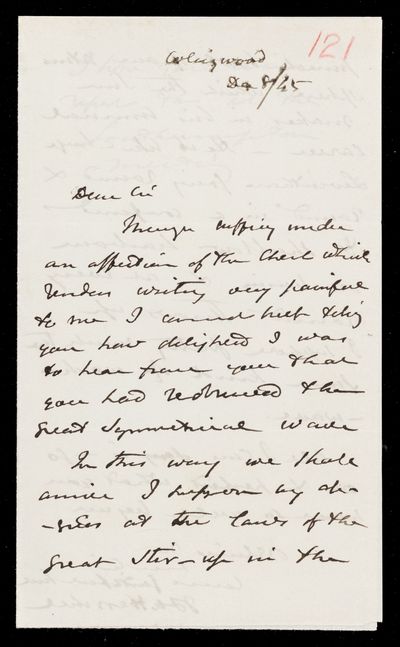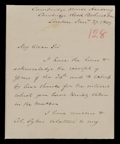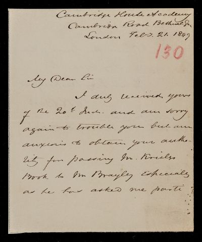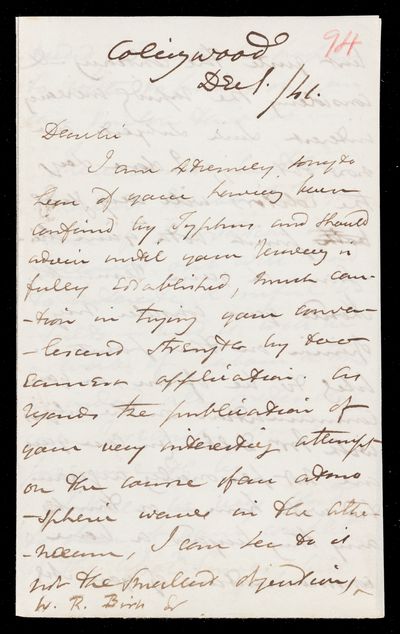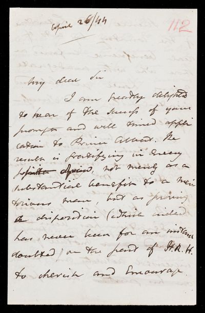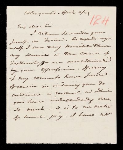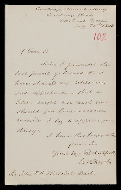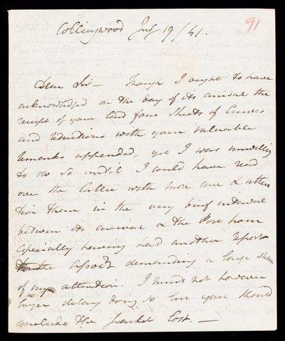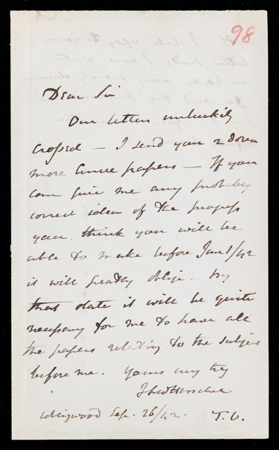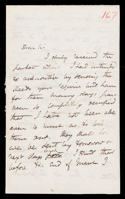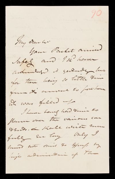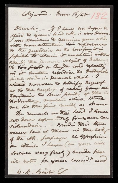Contemporary copy in sender's hand, signed by sender. William Radcliffe Birt's packet arrived safely today.