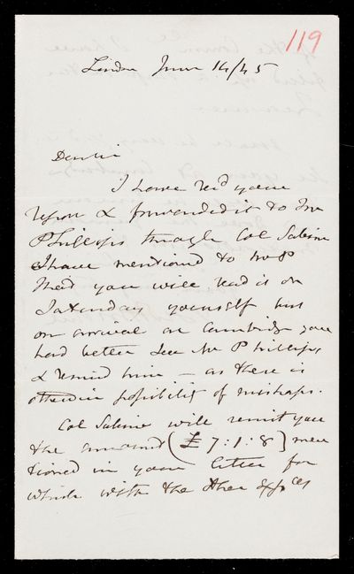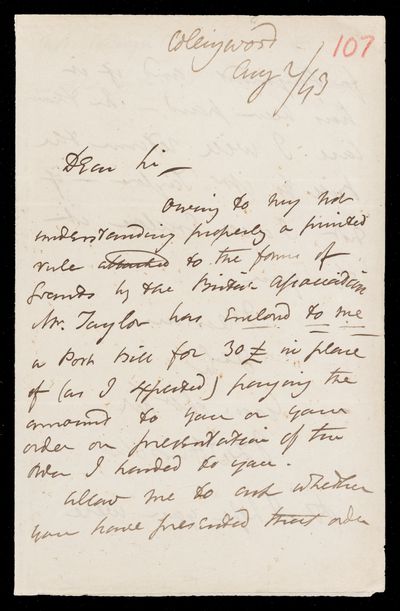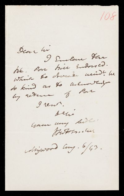 Autograph letter signed by sender. Has check for William Radcliffe Birt's expenses.