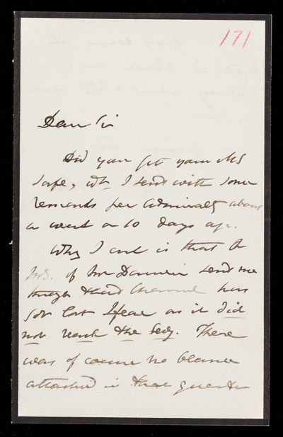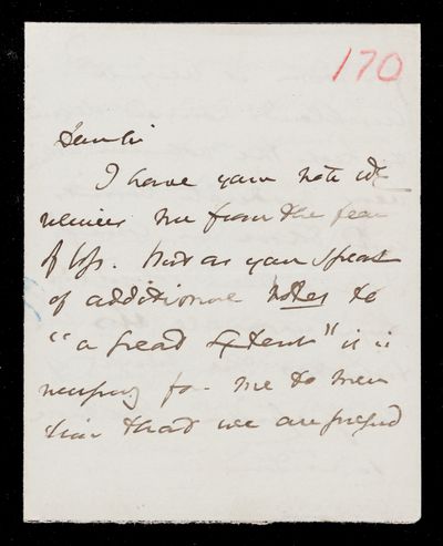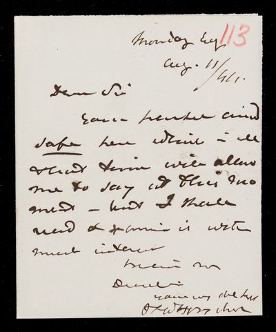 Autograph letter signed by sender. Has received the missing manuscript and models from York, yesterday.