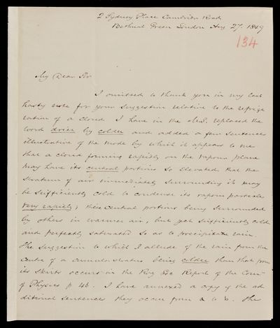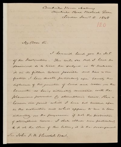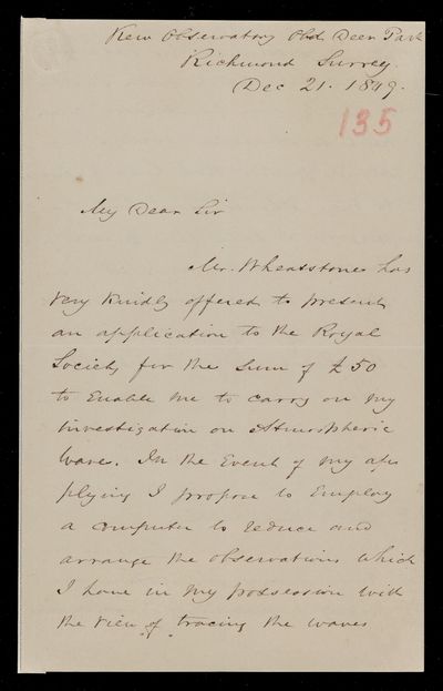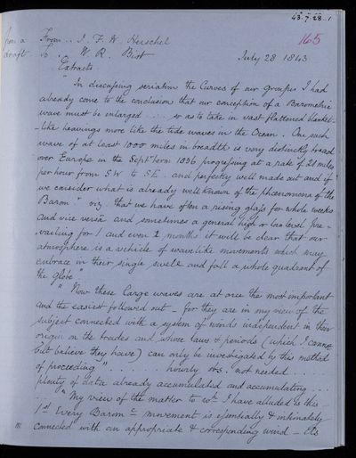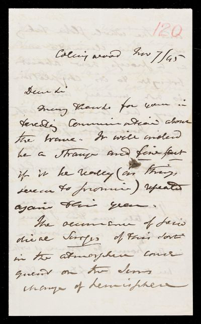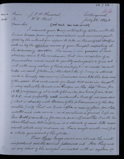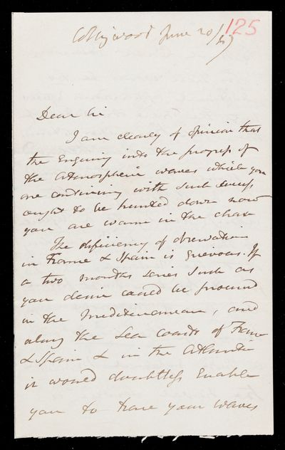 Autograph letter signed by sender. The great atmospheric wave has returned; observations on this.