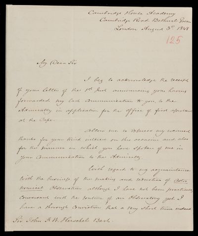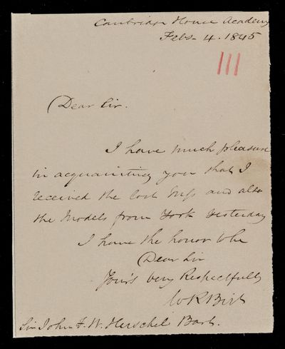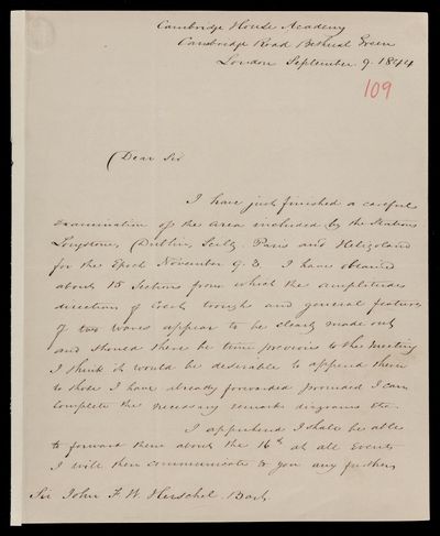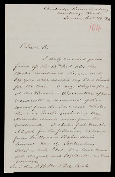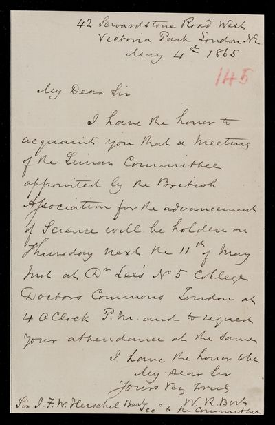 Reference number: HS/19/113Sir John Herschel serves as President of the British Association