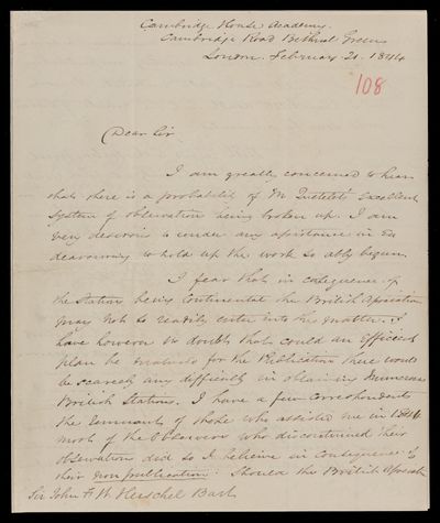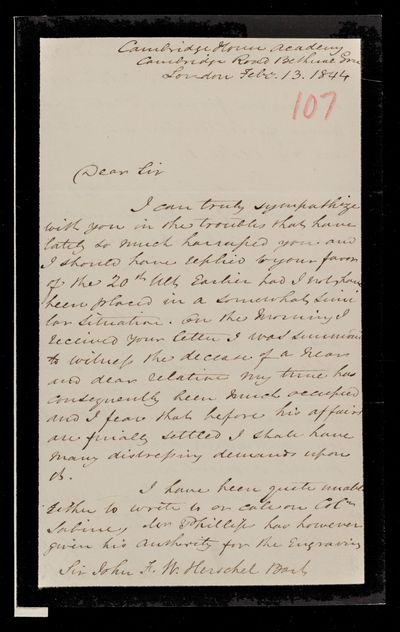 Sir John Herschel serves his second term as Foreign Secretary of the Royal Astronomical Society
