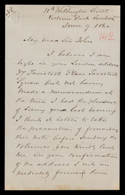 Autograph letter signed by sender. Since he forwarded the parcel he has changed his address.