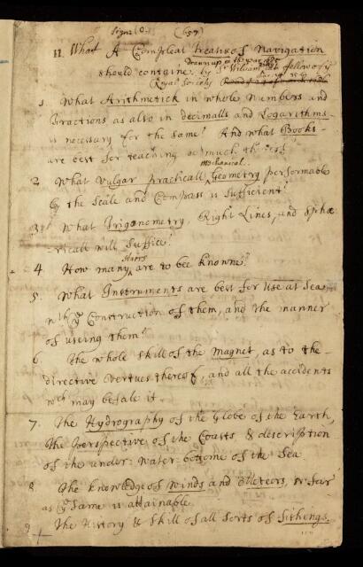 William Petty, Paper, 'What a compleat treatise of navigation should containe' by William Petty, 24 March 1686, CLP/7i/36, The Royal Society Archives, London, https://makingscience.royalsociety.org/items/clp_7i_36/paper-what-a-compleat-treatise-of-navigation-should-containe-by-william-petty, accessed on 11 February 2026