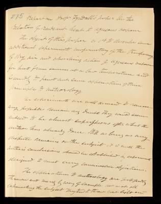John Tyndall, Paper, 'The Bakerian lecture. Researches on radiant heat' by John Tyndall, 1864, PT/70/6, The Royal Society Archives, London, https://makingscience.royalsociety.org/items/pt_70_6/paper-the-bakerian-lecture-researches-on-radiant-heat-by-john-tyndall, accessed on 23 January 2026
