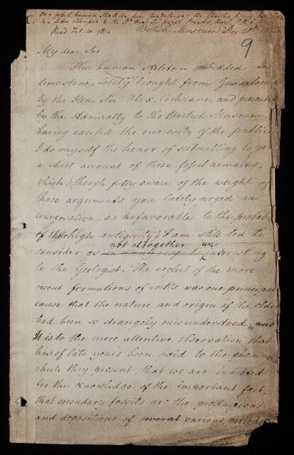 Charles Dietrich Eberhard Konig, Paper, 'On a fossil human skeleton from Guadaloupe' by Charles Konig in a letter to the Rt Hon Sir Joseph Banks, 20 December 1813, PT/8/9, The Royal Society Archives, London, https://makingscience.royalsociety.org/items/pt_8_9/paper-on-a-fossil-human-skeleton-from-guadaloupe-by-charles-konig-in-a-letter-to-the-rt-hon-sir-joseph-banks, accessed on 17 March 2026