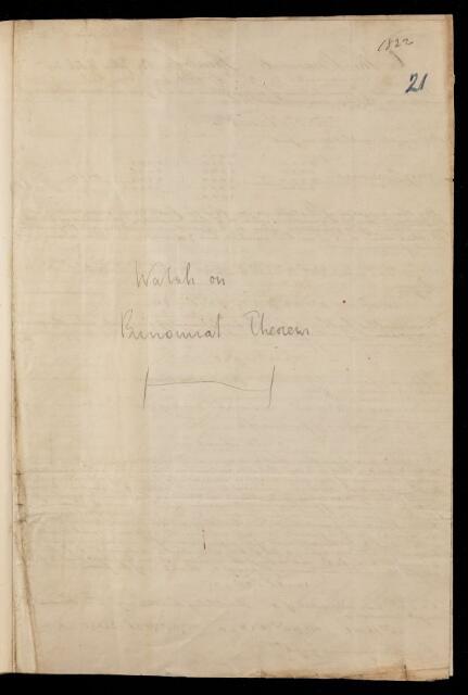 Unpublished paper, 'On the binomial theorem' by John Walsh, 01 June 1822, AP/11/21, The Royal Society Archives, London, https://makingscience.royalsociety.org/items/ap_11_21/unpublished-paper-on-the-binomial-theorem-by-john-walsh, accessed on 12 November 2025