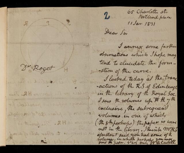 William Archibald Cadell, Unpublished letter, regarding formation of the curve from W A [William Archibald] Cadell to [Peter Mark] Roget, 11 January 1831, AP/15/2, The Royal Society Archives, London, https://makingscience.royalsociety.org/items/ap_15_2/unpublished-letter-regarding-formation-of-the-curve-from-w-a-william-archibald-cadell-to-peter-mark-roget, accessed on 16 January 2026