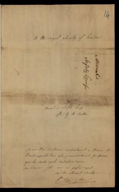 The 'Archived Papers' collection is comprised of original manuscript scientific papers and letters submitted to the Royal Society which remained unpublished or were abstracted in the journal 'Proceedings of the Royal Society' published from 1830 onwards.