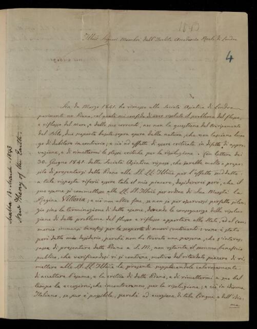 S Camibaris, Unpublished paper, 'Nuovo sistema della naturale posizione del globo celeste' [New system of the natural position of the celestial globe] by S Camibaris, 13 March 1843, AP/24/4, The Royal Society Archives, London, https://makingscience.royalsociety.org/items/ap_24_4/unpublished-paper-nuovo-sistema-della-naturale-posizione-del-globo-celeste-new-system-of-the-natural-position-of-the-celestial-globe-by-s-camibaris, accessed on 15 March 2026