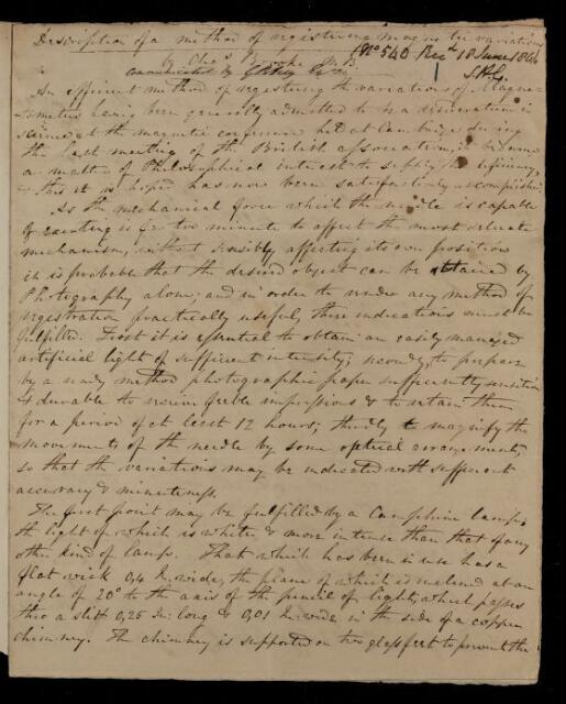 Unpublished paper, 'Description of a method of registering magnetic variations' by Charles Brooke