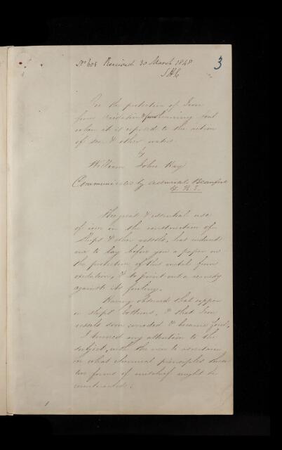 The 'Archived Papers' collection is comprised of original manuscript scientific papers and letters submitted to the Royal Society which remained unpublished or were abstracted in the journal 'Proceedings of the Royal Society' published from 1830 onwards.