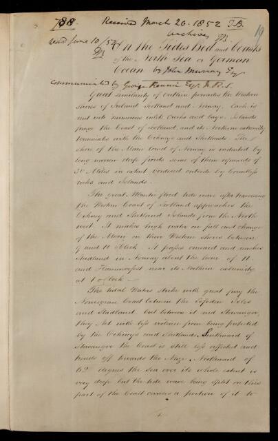 John Murray, Unpublished paper, 'On the tides, bed and coasts of the North Sea or German Ocean' by John Murray, 17 March 1852, AP/33/19, The Royal Society Archives, London, https://makingscience.royalsociety.org/items/ap_33_19/unpublished-paper-on-the-tides-bed-and-coasts-of-the-north-sea-or-german-ocean-by-john-murray, accessed on 05 March 2026