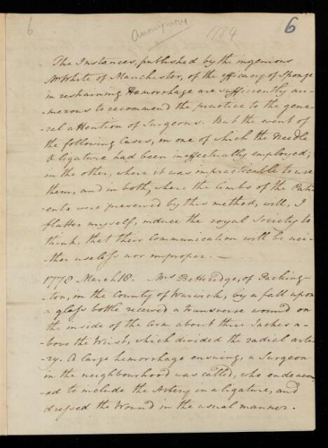 Unpublished paper, on the efficacy of sponge as a styptic by unknown author, 1784, AP/5/6, The Royal Society Archives, London, https://makingscience.royalsociety.org/items/ap_5_6/unpublished-paper-on-the-efficacy-of-sponge-as-a-styptic-by-unknown-author, accessed on 17 March 2026