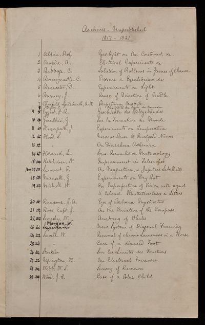Archived papers: volume 9, scientific papers submitted the Royal Society unpublished or abstracted, 1817-1821, 1815-1821, AP/9, The Royal Society Archives, London, https://makingscience.royalsociety.org/items/ap_9/archived-papers-volume-9-scientific-papers-submitted-the-royal-society-unpublished-or-abstracted-1817-1821, accessed on 16 April 2026