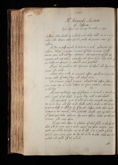 Charles Howard, Paper, 'Saffron' by Charles Howard, 1663, CLP/10iii/6, The Royal Society Archives, London, https://makingscience.royalsociety.org/items/clp_10iii_6/paper-saffron-by-charles-howard, accessed on 05 December 2025