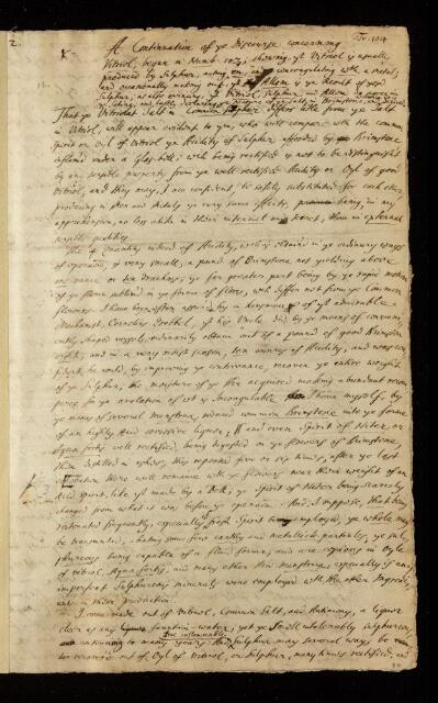 Paper, 'A continuation of the discourse concerning vitriol, begun in numb. 103; shewing, that vitriol is usually produced by sulphur, acting on, and concoagulating with, a metal; and occasionally making out, that allom is the result of the said sulphur; as also evincing, that vitriol, sulphur, and allom do agree in the saline; and lastly declaring the nature of the salt in brimstone, and whence it is derived' by unknown author, 1674, CLP/11i/16, The Royal Society Archives, London, https://makingscience.royalsociety.org/items/clp_11i_16/paper-a-continuation-of-the-discourse-concerning-vitriol-begun-in-numb-103-shewing-that-vitriol-is-usually-produced-by-sulphur-acting-on-and-concoagulating-with-a-metal-and-occasionally-making-out-that-allom-is-the-result-of-the-said-sulphur-as-also-evincing-that-vitriol-sulphur-and-allom-do-agree-in-the-saline-and-lastly-declaring-the-nature-of-the-salt-in-brimstone-and-whence-it-is-derived-by-unknown-author, accessed on 11 November 2025