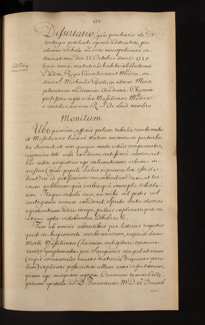 Antoine Deidier, Paper, 'Dissertatio qua peculiaris de contagio pestilenti opinio adstruitur' [Observations on the plague] by Antonio [Antoine] Deidier, 22 October 1725, CLP/14ii/22, The Royal Society Archives, London, https://makingscience.royalsociety.org/items/clp_14ii_22/paper-dissertatio-qua-peculiaris-de-contagio-pestilenti-opinio-adstruitur-observations-on-the-plague-by-antonio-antoine-deidier, accessed on 11 March 2026