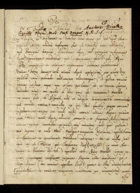 IV. De frigidae in febribus usu. Auctore Cl. Nicolao Cyrillo Prim. Med. Prof. Neapol. & R. S. S External link, opens in new tab.