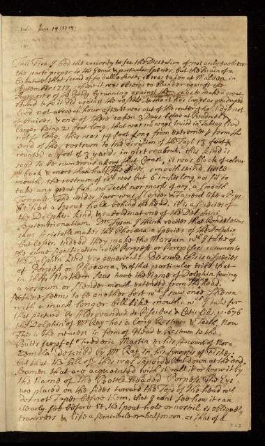 Paper, regarding the dissection of a dolphin by Benjamin Allen, 1729, CLP/15ii/14, The Royal Society Archives, London, https://makingscience.royalsociety.org/items/clp_15ii_14/paper-regarding-the-dissection-of-a-dolphin-by-benjamin-allen, accessed on 15 March 2026