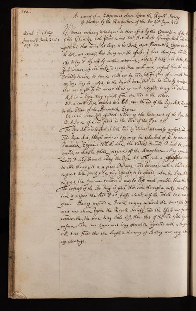 Denis Papin, Paper, regarding shooting by rarefaction of air by Denis Papin, 03 March 1686, CLP/18i/12, The Royal Society Archives, London, https://makingscience.royalsociety.org/items/clp_18i_12/paper-regarding-shooting-by-rarefaction-of-air-by-denis-papin, accessed on 14 November 2025