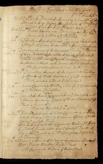 Francis Hauksbee, List of the main experiments made in 1708/1709 by Francis Hauksbee, 1709, CLP/18i/124, The Royal Society Archives, London, https://makingscience.royalsociety.org/items/clp_18i_124/list-of-the-main-experiments-made-in-17081709-by-francis-hauksbee, accessed on 15 January 2026