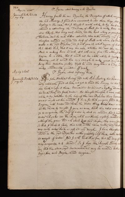 Denis Papin, Paper, regarding extract of malt prepared for brewing in the digester by Denis Papin, 12 May 1686, CLP/18i/19, The Royal Society Archives, London, https://makingscience.royalsociety.org/items/clp_18i_19/paper-regarding-extract-of-malt-prepared-for-brewing-in-the-digester-by-denis-papin, accessed on 14 November 2025