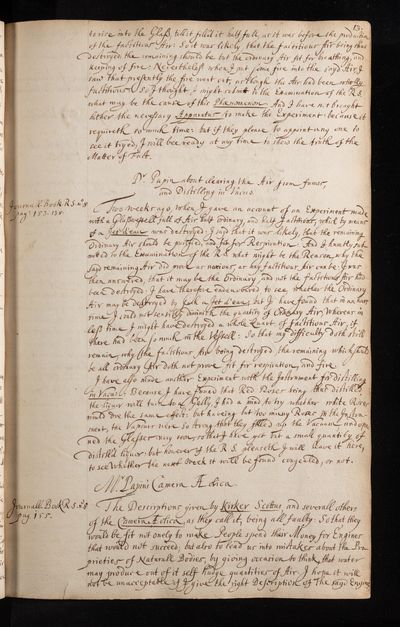 Denis Papin, Paper, regarding purifying the air and distilling water in vacuo by Denis Papin, 1687, CLP/18i/58, The Royal Society Archives, London, https://makingscience.royalsociety.org/items/clp_18i_58/paper-regarding-purifying-the-air-and-distilling-water-in-vacuo-by-denis-papin, accessed on 23 January 2026