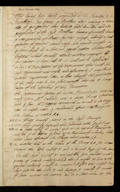 Denis Papin, Paper, regarding use of gunpowder to raise weights by Denis Papin, 1687, CLP/18i/65, The Royal Society Archives, London, https://makingscience.royalsociety.org/items/clp_18i_65/paper-regarding-use-of-gunpowder-to-raise-weights-by-denis-papin, accessed on 06 March 2026