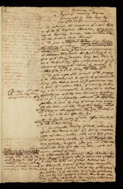 Paper, 'Directions and enquiries concerning Virginia [USA] recommended to Edward Diggs' by unknown author, 22 July 1669, CLP/19/48, The Royal Society Archives, London, https://makingscience.royalsociety.org/items/clp_19_48/paper-directions-and-enquiries-concerning-virginia-usa-recommended-to-edward-diggs-by-unknown-author, accessed on 11 April 2026