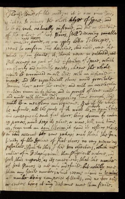 Edmond Halley, Paper, 'Of the infinity of the world; and of the number, order, and light of the fixed stars' by Edmond Halley, 1720, CLP/21/54, The Royal Society Archives, London, https://makingscience.royalsociety.org/items/clp_21_54/paper-of-the-infinity-of-the-world-and-of-the-number-order-and-light-of-the-fixed-stars-by-edmond-halley, accessed on 16 March 2026