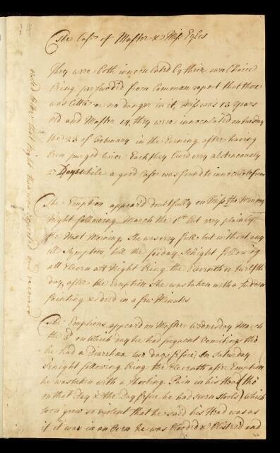 Paper, 'Case of Master and Miss Eyles' by Mr [William] Cheselden