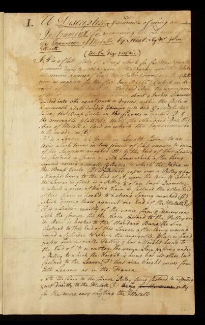 I. The description and manner of using an instrument for measuring the degrees of the expansion of metals by heat External link, opens in new tab.