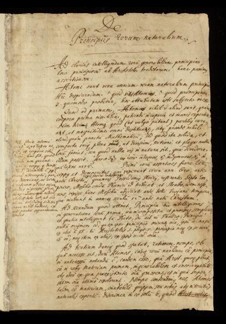 Paper, 'De principiis rerum naturalium' [The principles of nature] by unknown author, c 17th Century, CLP/4i/32, The Royal Society Archives, London, https://makingscience.royalsociety.org/items/clp_4i_32/paper-de-principiis-rerum-naturalium-the-principles-of-nature-by-unknown-author, accessed on 15 January 2026