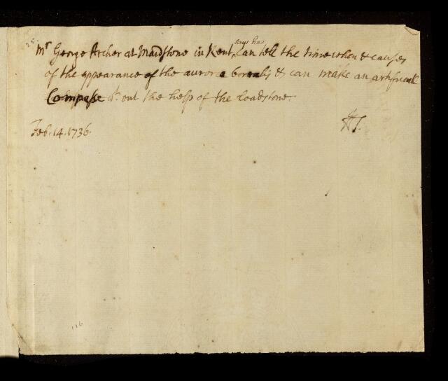 Paper, regarding George Archer of Maidstone, Kent [England] by unknown author, 17 February 1736, CLP/4ii/25, The Royal Society Archives, London, https://makingscience.royalsociety.org/items/clp_4ii_25/paper-regarding-george-archer-of-maidstone-kent-england-by-unknown-author, accessed on 09 November 2025