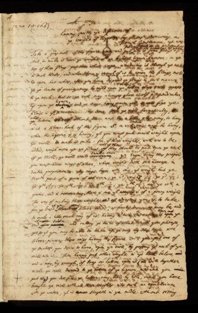 Paper, English translationg of 'A way of knowing exactly the difference of the weight of liquors' by [Balthasar de] Monconis [Monconys], 10 June 1663, CLP/6/12a, The Royal Society Archives, London, https://makingscience.royalsociety.org/items/clp_6_12a/paper-english-translationg-of-a-way-of-knowing-exactly-the-difference-of-the-weight-of-liquors-by-balthasar-de-monconis-monconys, accessed on 15 February 2026