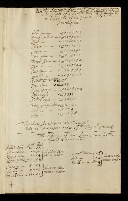 Paper, regarding experiments to show the weight of some metals, stones and liquids by Mr Reynolds, 1670, CLP/6/26, The Royal Society Archives, London, https://makingscience.royalsociety.org/items/clp_6_26/paper-regarding-experiments-to-show-the-weight-of-some-metals-stones-and-liquids-by-mr-reynolds, accessed on 11 April 2026