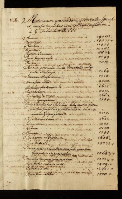 Fahrenheit presents a table with thirty substances (metal, mineral, chemical, spirits, oils and other fluids), and discusses methods and precautions used in carrying out the experiment on the gravity of different substances.