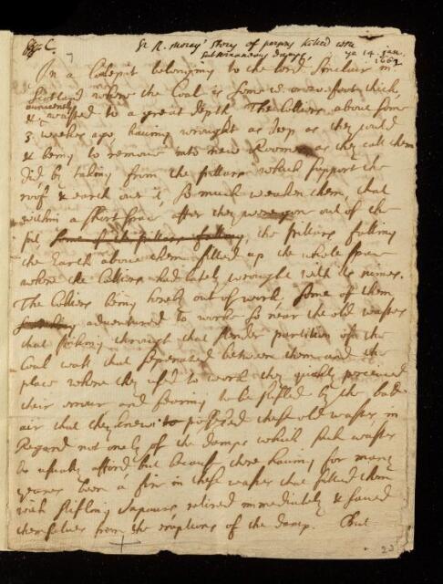 Robert Moray, Paper, a relation of persons killed in subterraneous damps by Robert Moray, 1662, CLP/9i/7, The Royal Society Archives, London, https://makingscience.royalsociety.org/items/clp_9i_7/paper-a-relation-of-persons-killed-in-subterraneous-damps-by-robert-moray, accessed on 06 December 2025
