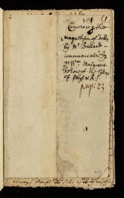 Paper, 'Concerning the magnetism of drills' by Mr Ballard, 1698, CLP/9ii/11a, The Royal Society Archives, London, https://makingscience.royalsociety.org/items/clp_9ii_11a/paper-concerning-the-magnetism-of-drills-by-mr-ballard, accessed on 13 February 2026