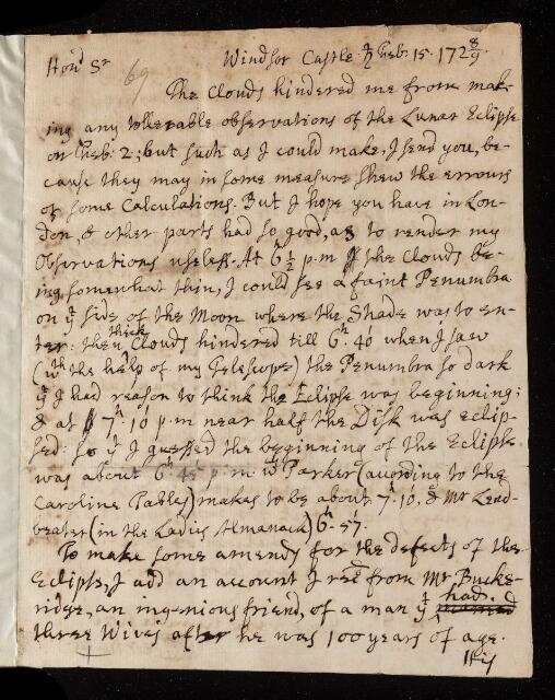 William Derham, William Derham, Letter, from William Derham to William Rutty, 15 February 1728, EL/D1/69, The Royal Society Archives, London, https://makingscience.royalsociety.org/items/el_d1_69/letter-from-william-derham-to-william-rutty, accessed on 07 December 2025