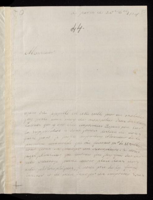 Antoine Deidier, Antoine Deidier, Letter, from Antoine Deidier [to the Royal Society], dated at Paris, 20 August 1724, EL/D2/44, The Royal Society Archives, London, https://makingscience.royalsociety.org/items/el_d2_44/letter-from-antoine-deidier-to-the-royal-society-dated-at-paris, accessed on 17 March 2026