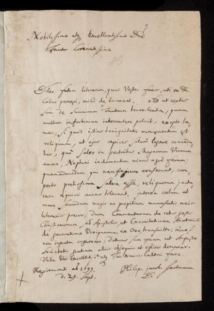 Philipp Jakob Hartmann, Letter, from Philip Jacob Hartman to Hans Sloane, 29 September 1699, EL/H3/86, The Royal Society Archives, London, https://makingscience.royalsociety.org/items/el_h3_86/letter-from-philip-jacob-hartman-to-hans-sloane, accessed on 16 November 2025